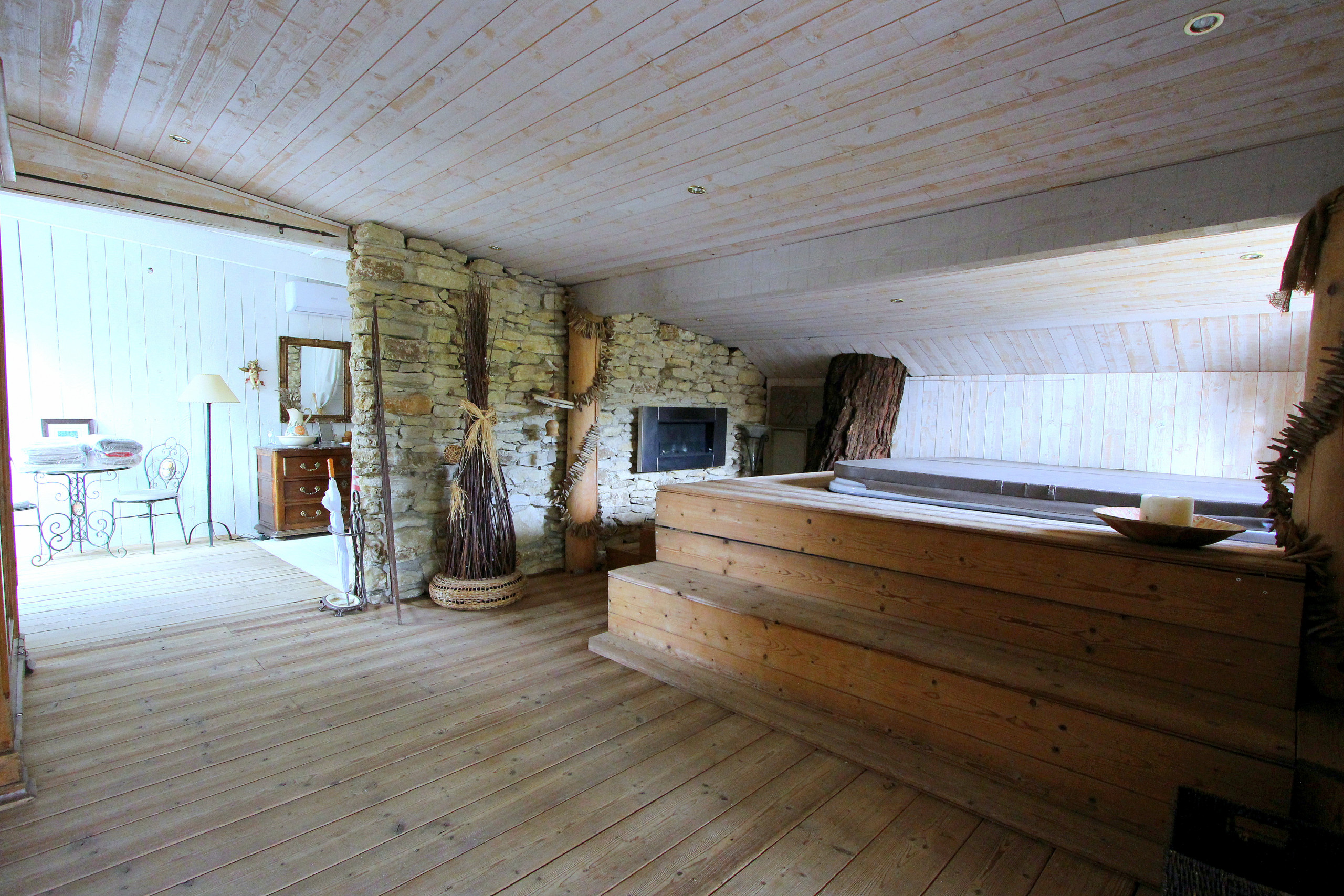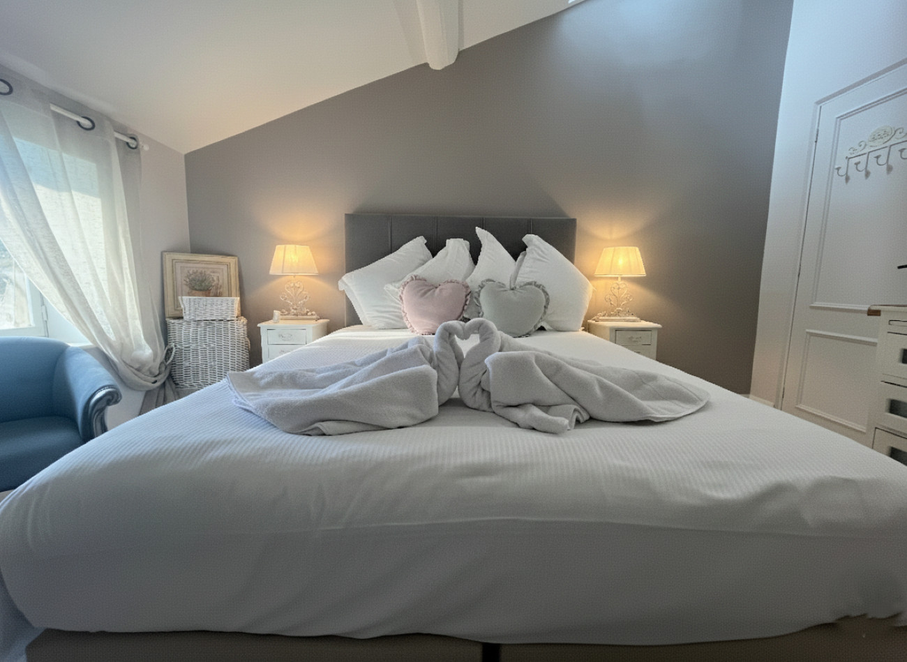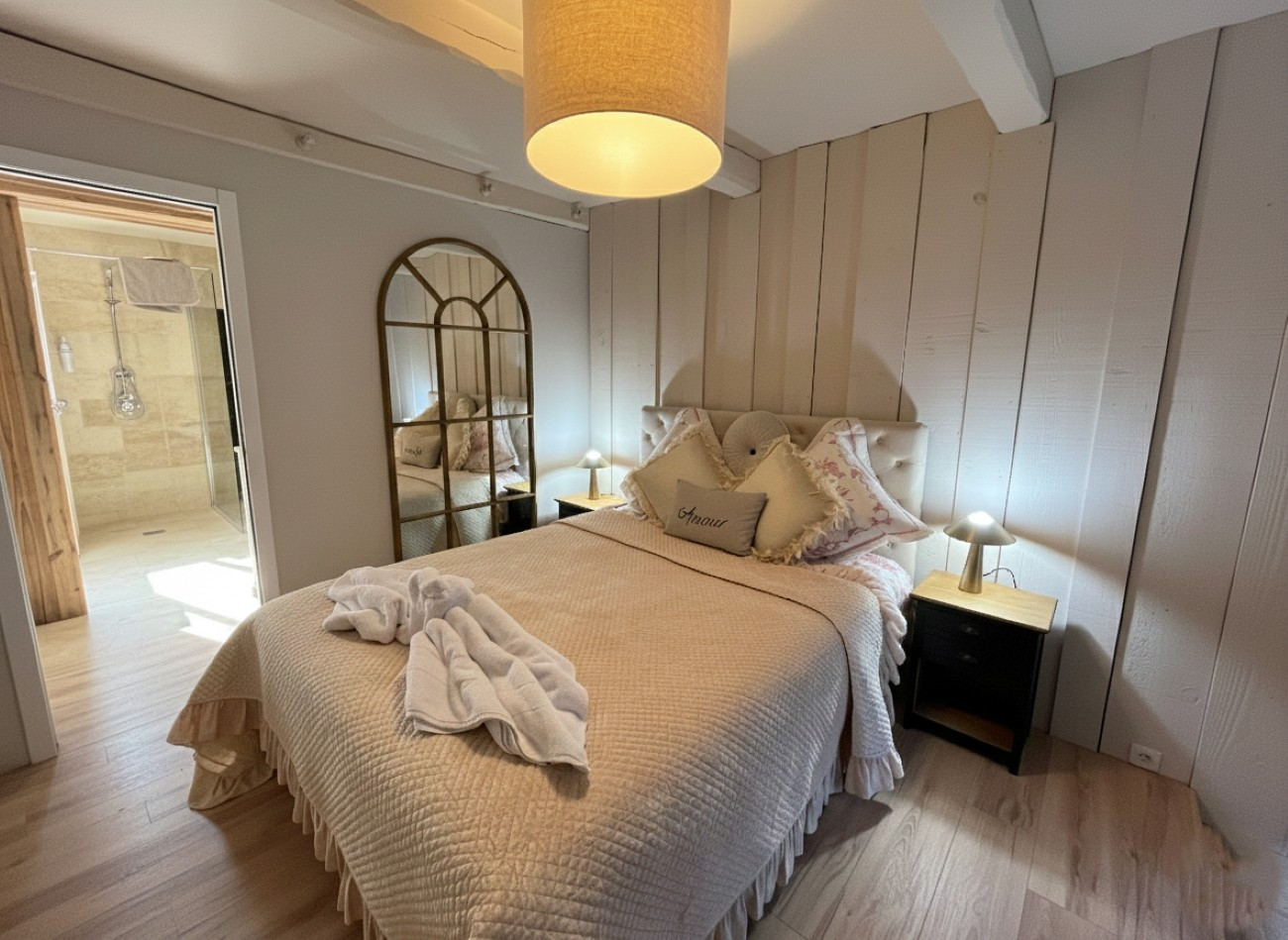 The farmhouse offers great comfort for 14 people, with vast spaces conducive to shared moments around large tables. You will particularly appreciate its heated private pool, its jacuzzi and its sauna. Everything is designed to guarantee relaxation, well-being and entertainment.