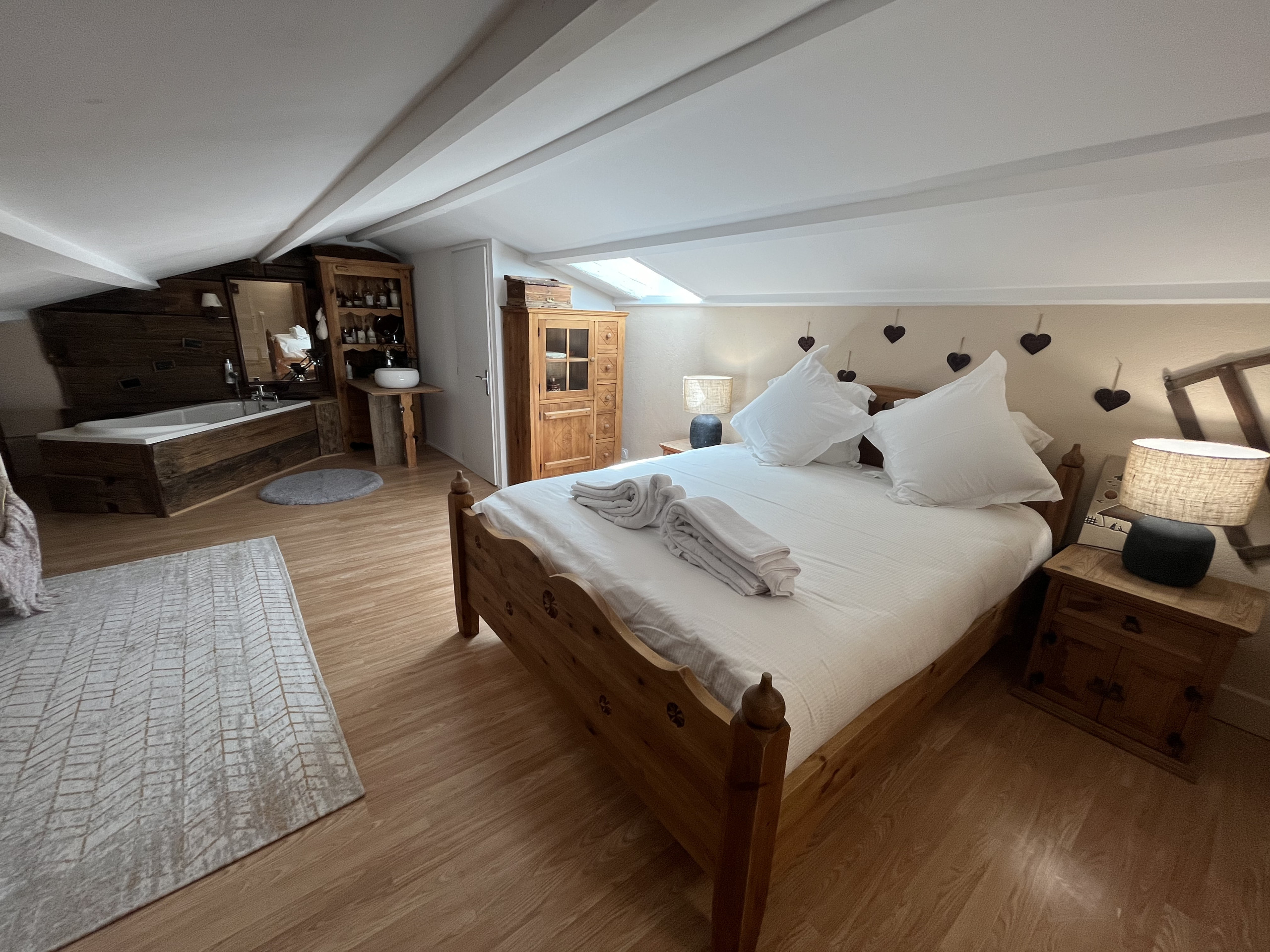 • A room with a 160 double bed and adjoining bathroom (1 basin, shower and WC)