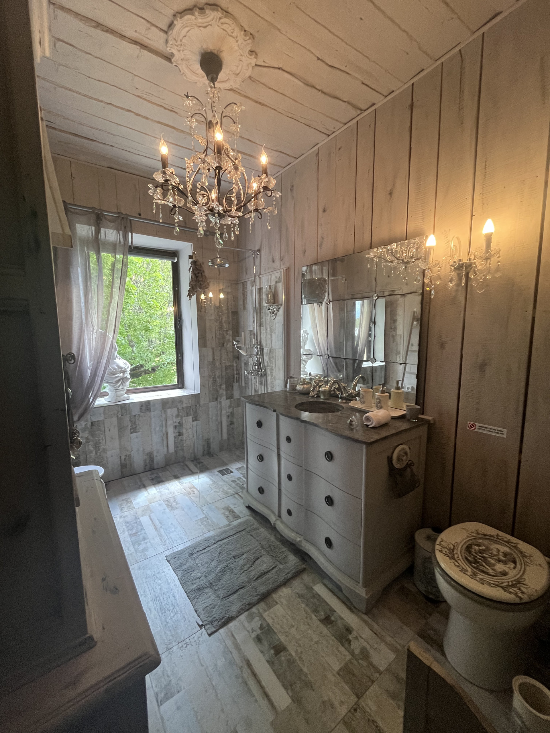 o A toilet area with shower and WC
