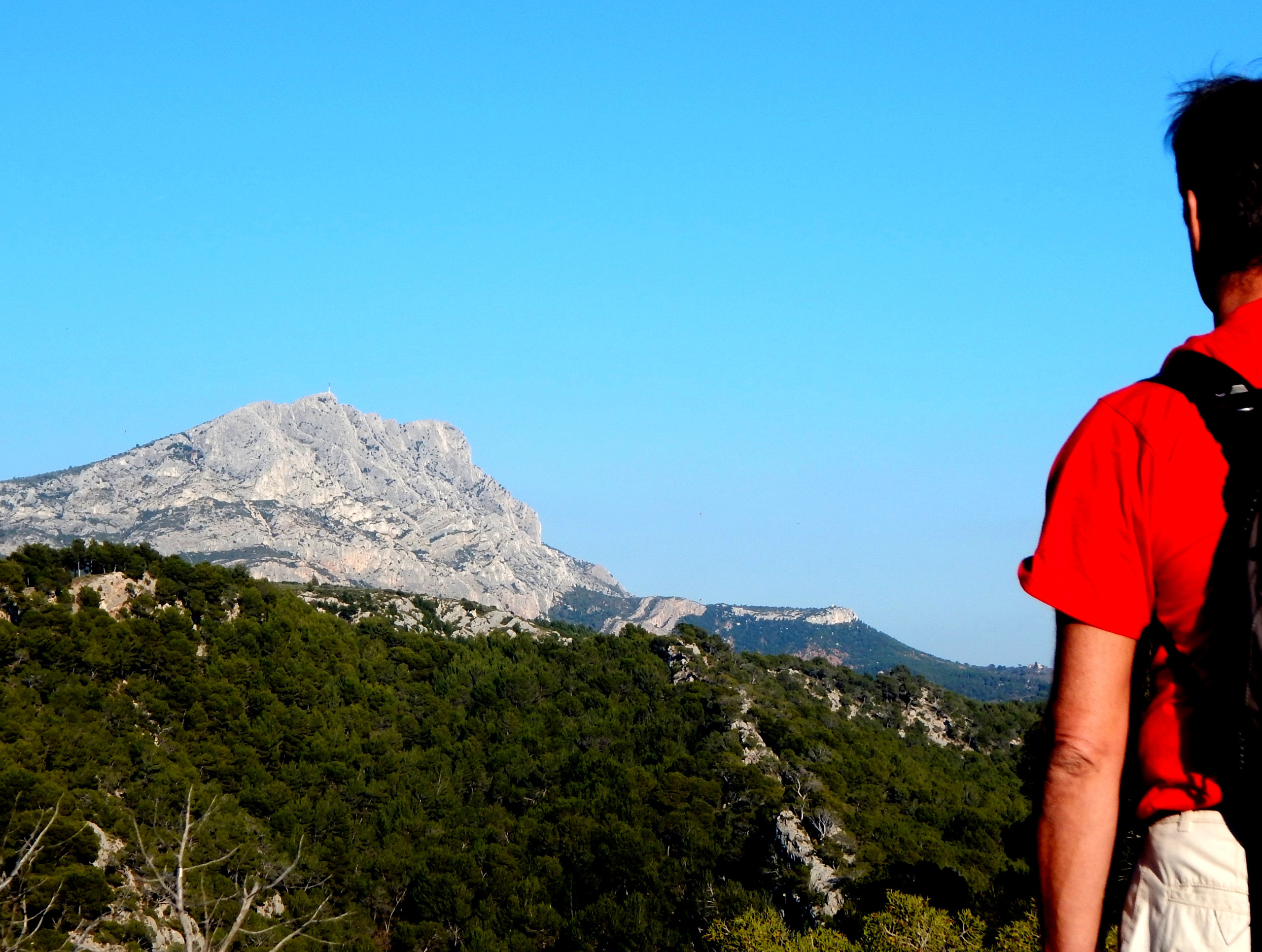 You'll reach your first viewpoint above the gorges carved out by the river Cause, with Mont Sainte-Victoire in the background.