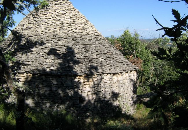 Then, after a fine view of the Grand Luberon mountain, as you follow a path back towards Viens, you'll admire the largest hut in the area, with its beehive-like profile.