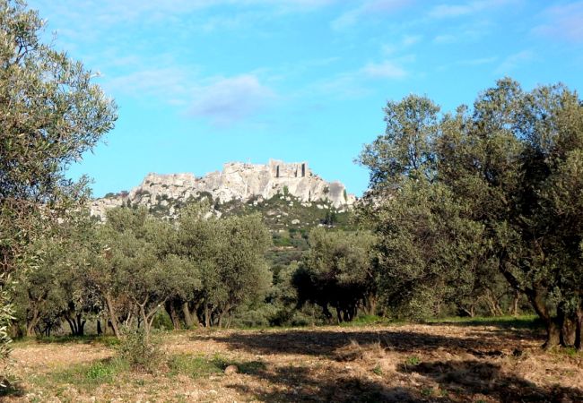 After skirting the escarpment for a while, with olive groves all around, you'll reach and follow the Vallée des Baux canal, bypassing a string of arid hills...