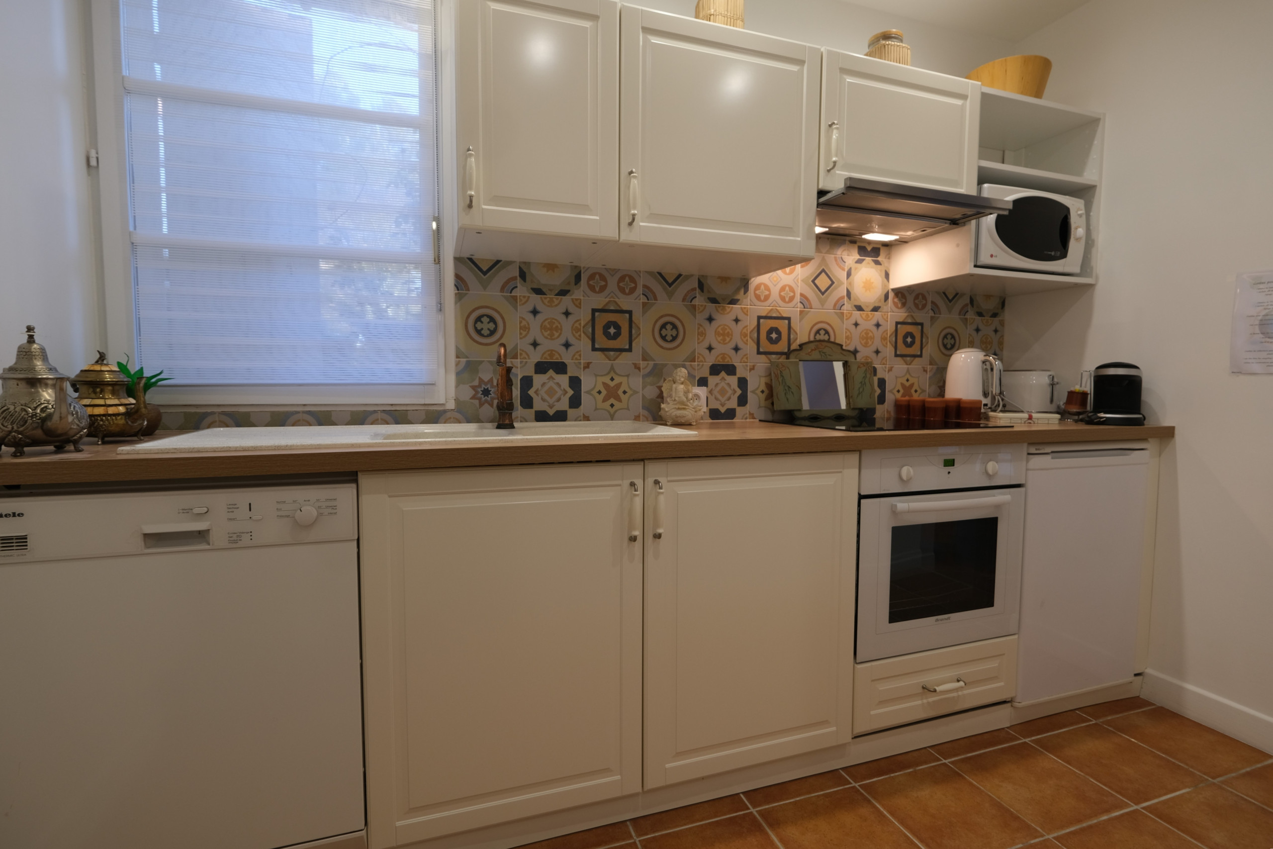 o Un espace cuisine extérieur : plaque de cuisson, réfrigérateur, vaisselle et lave-vaisselle