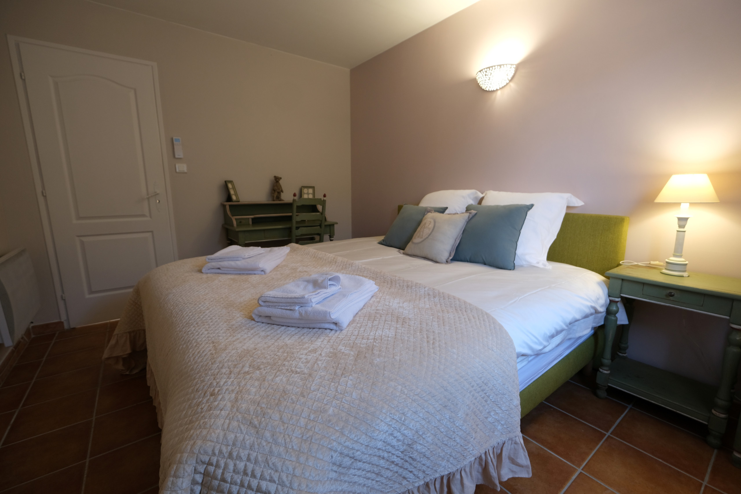 • Une chambre avec lit double 160 et salle d’eau attenante (1 vasque, douche et WC)