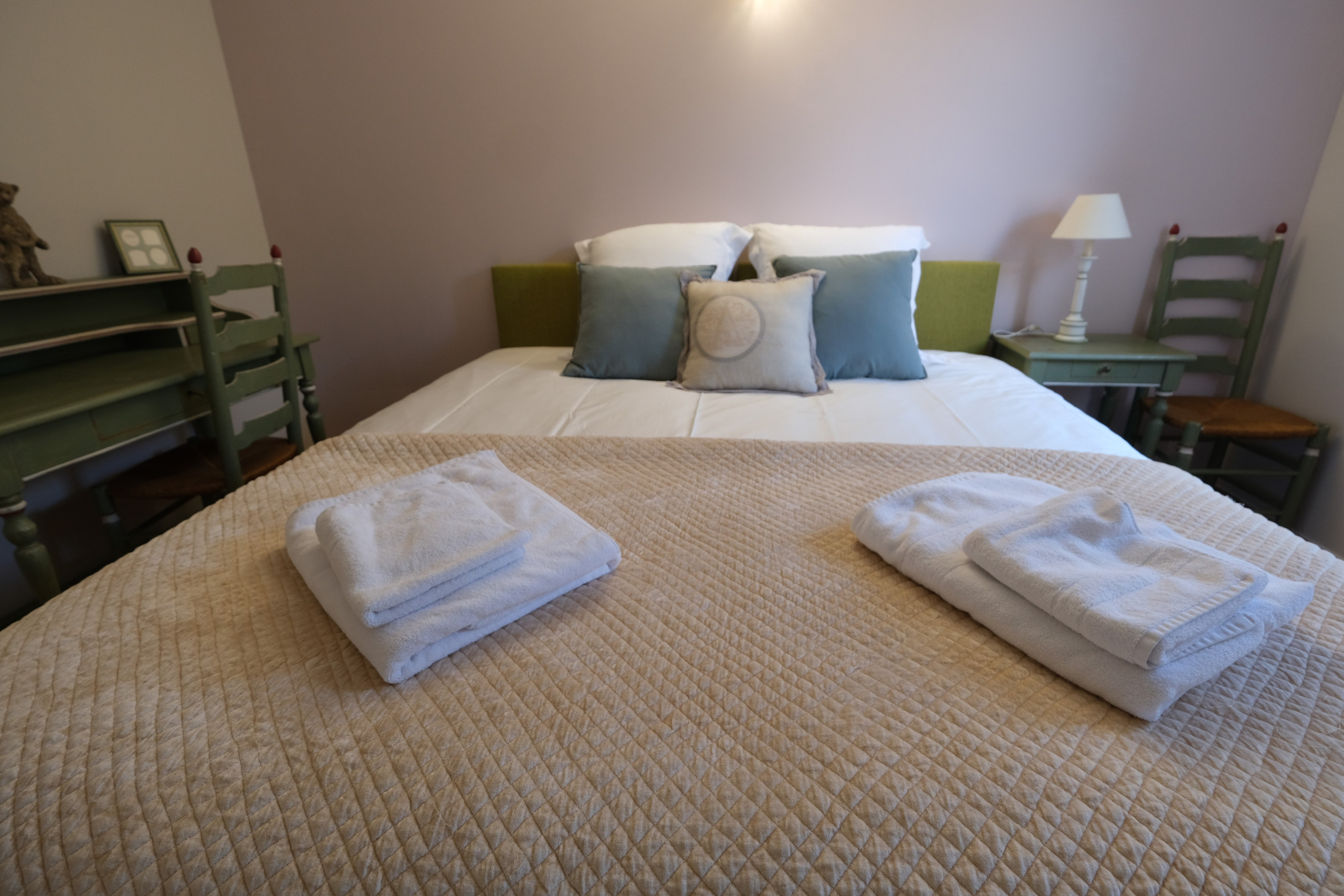 • Une chambre climatisée avec lit double 160 et salle d’eau attenante (1 vasque, 1 douche et 1 WC)