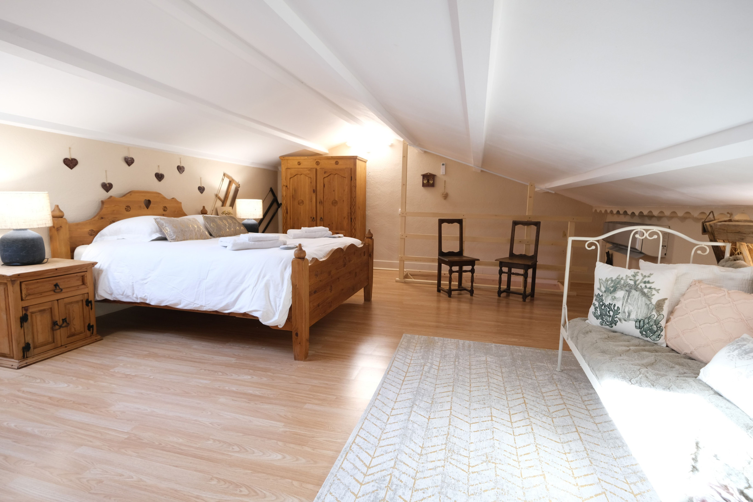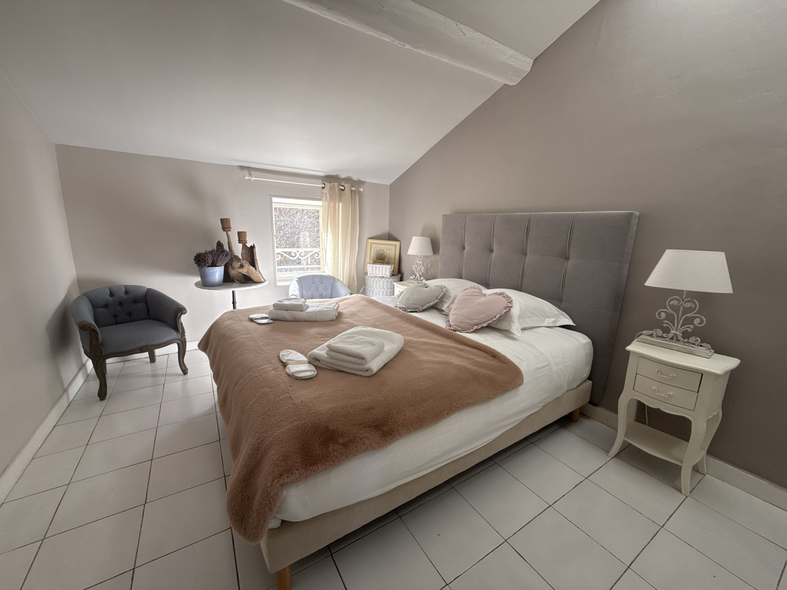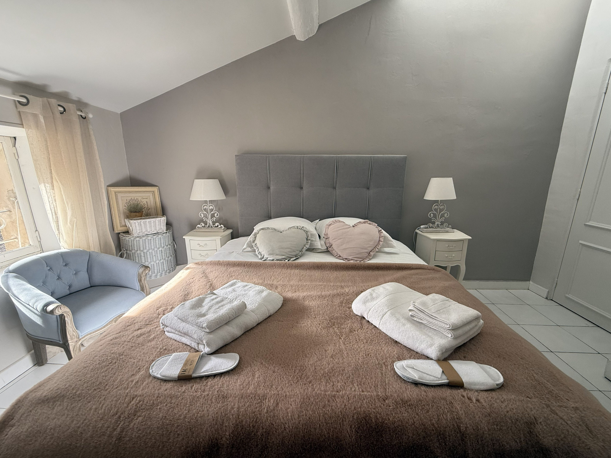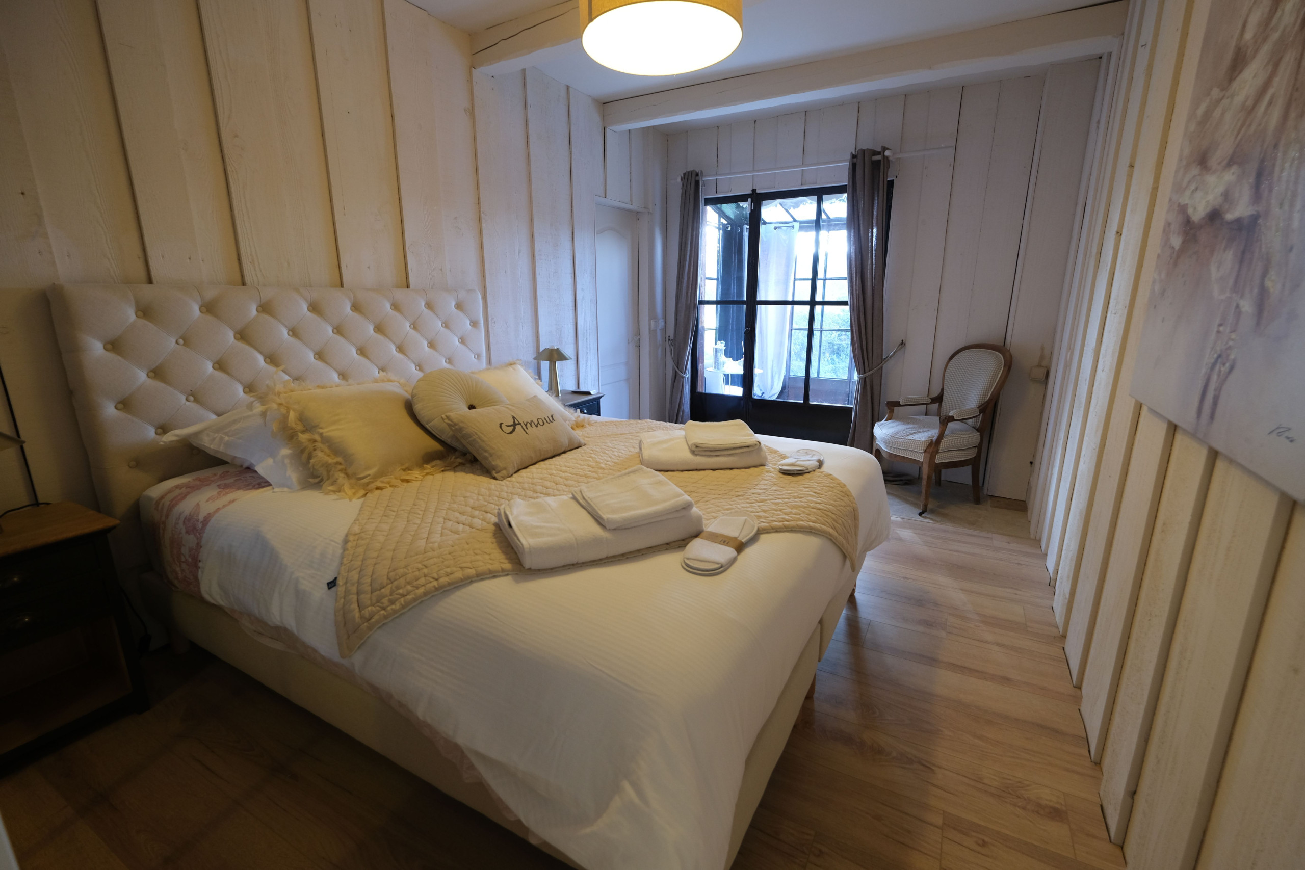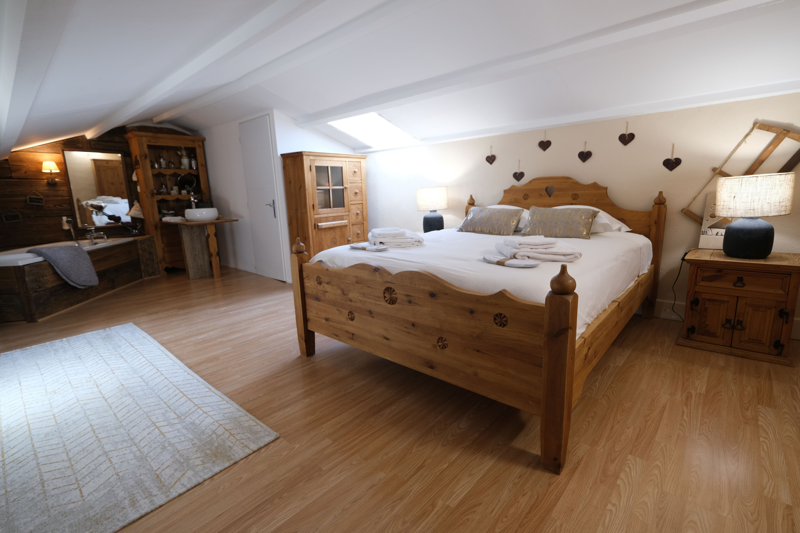 • Une chambre avec lit double 160 et salle d’eau attenante (1 vasque, douche et WC)