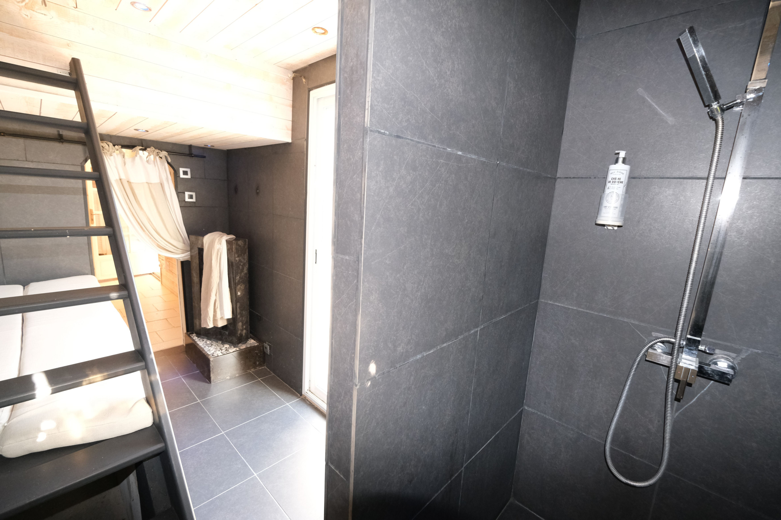 La chambre du rez-de-chaussée dispose d’une grande douche, mais n’est pas aménagée aux normes “Tourisme & Handicap”.