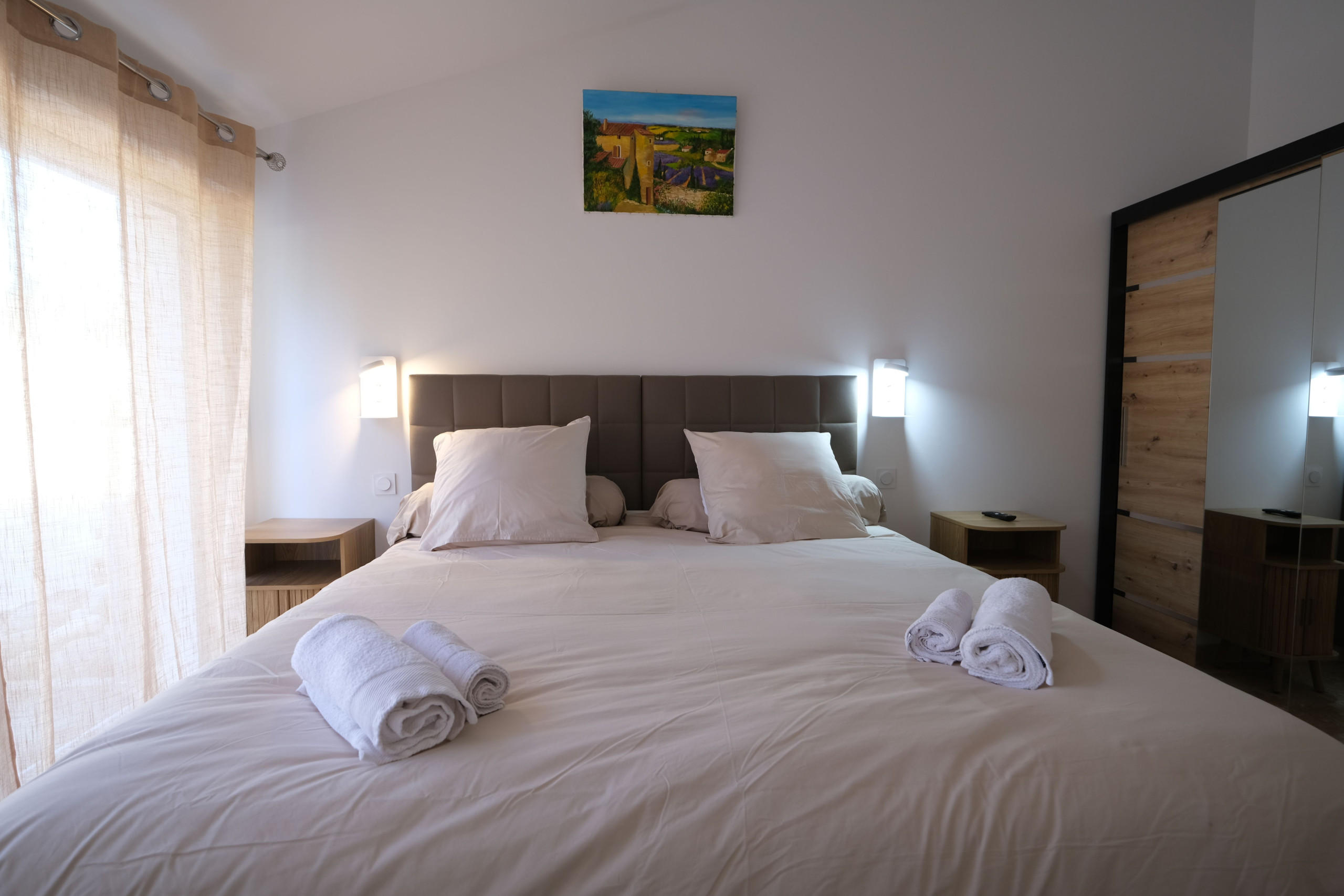 Linge de maison inclus : draps, torchons, nappes et serviettes de toilette.