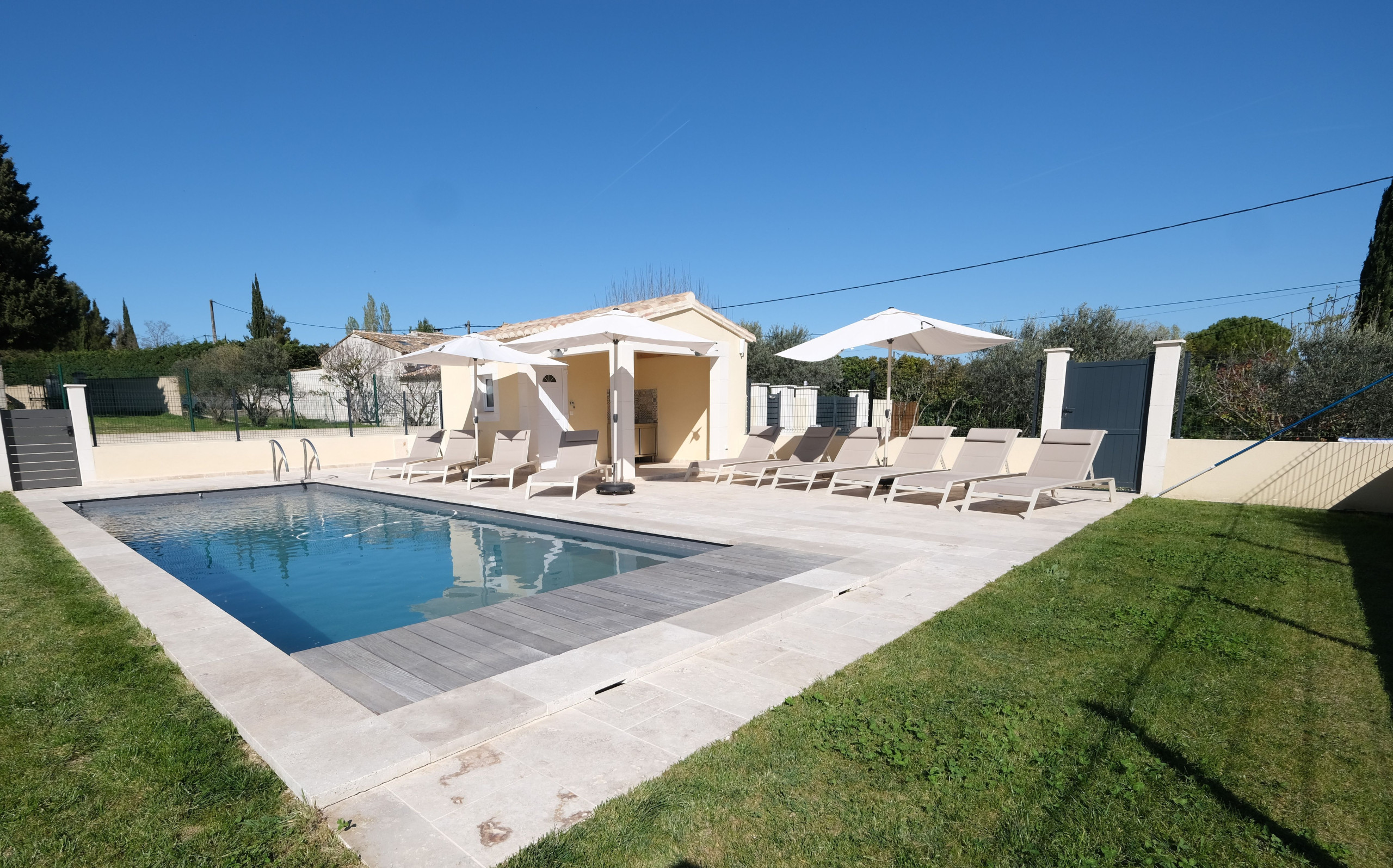 Entièrement sécurisé pour les enfants, cet espace piscine est aménagé comme suit :