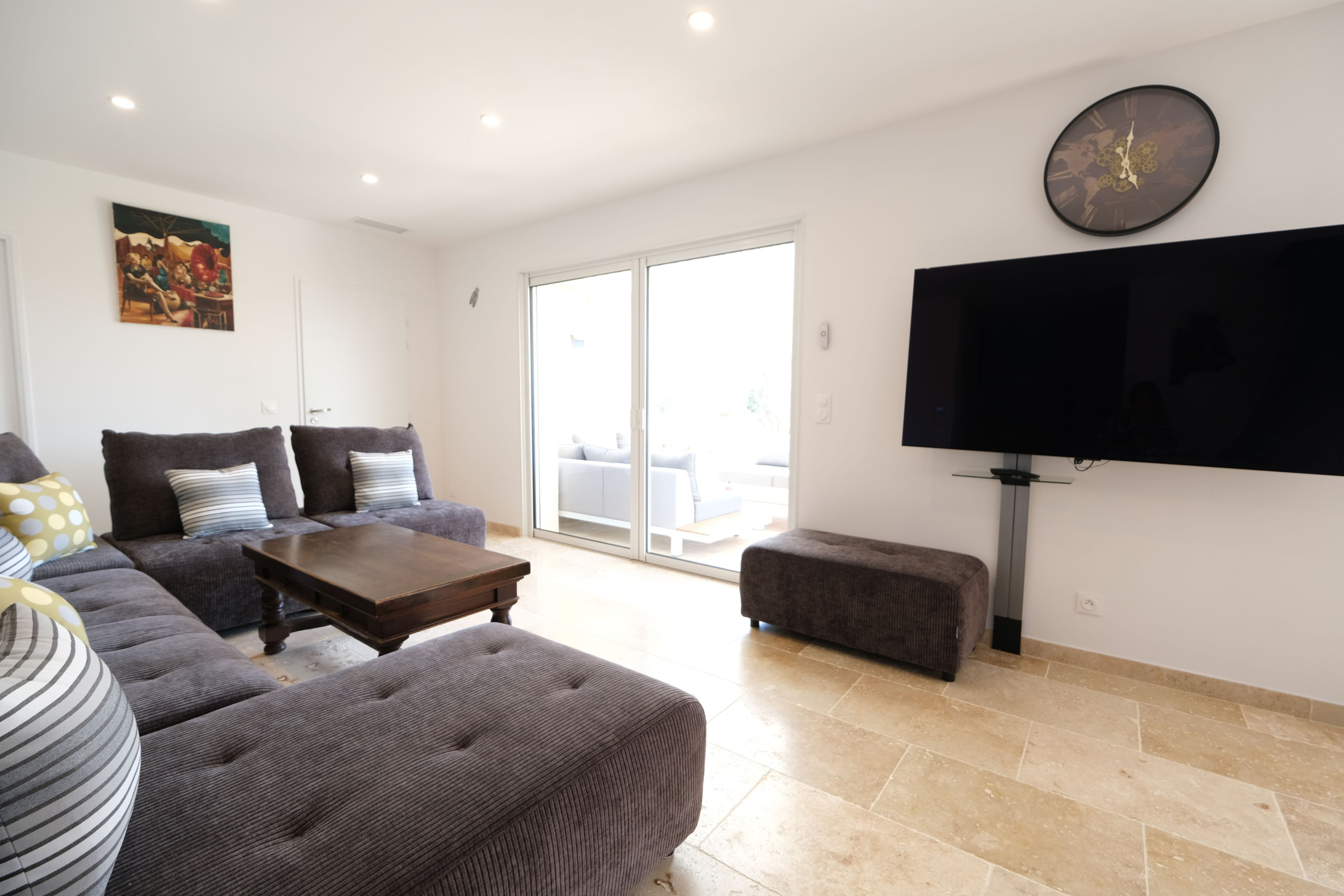 Cette location de 220 m² sur deux niveaux est décorée dans un style contemporain et offre un très grand confort. La maison est entièrement climatisée par un sol rafraîchissant.