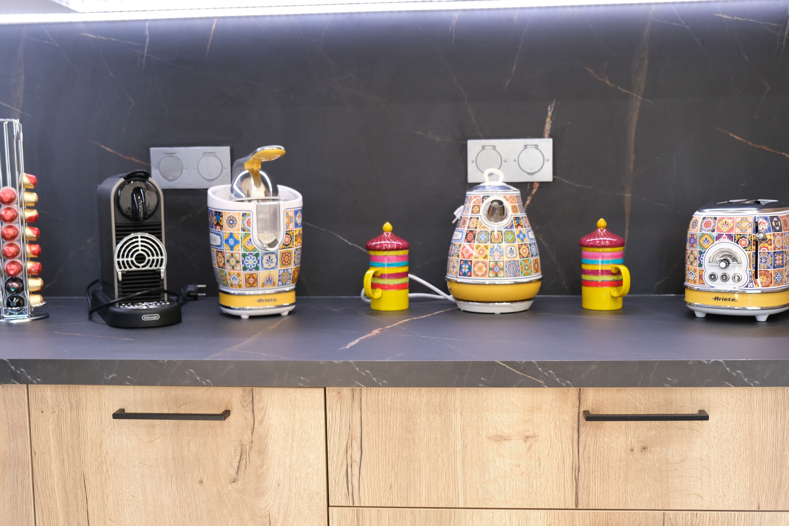 Cuisine (23 m²) avec coin repas, frigo américain, lave-vaisselle, micro-ondes, four, congélateur, bouilloire, toaster, cafetière Dolce Gusto, plaque à induction